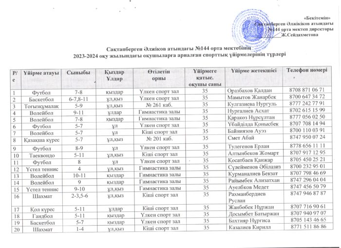 р/с | Үйірме атауы | Қатысатын бала саны |